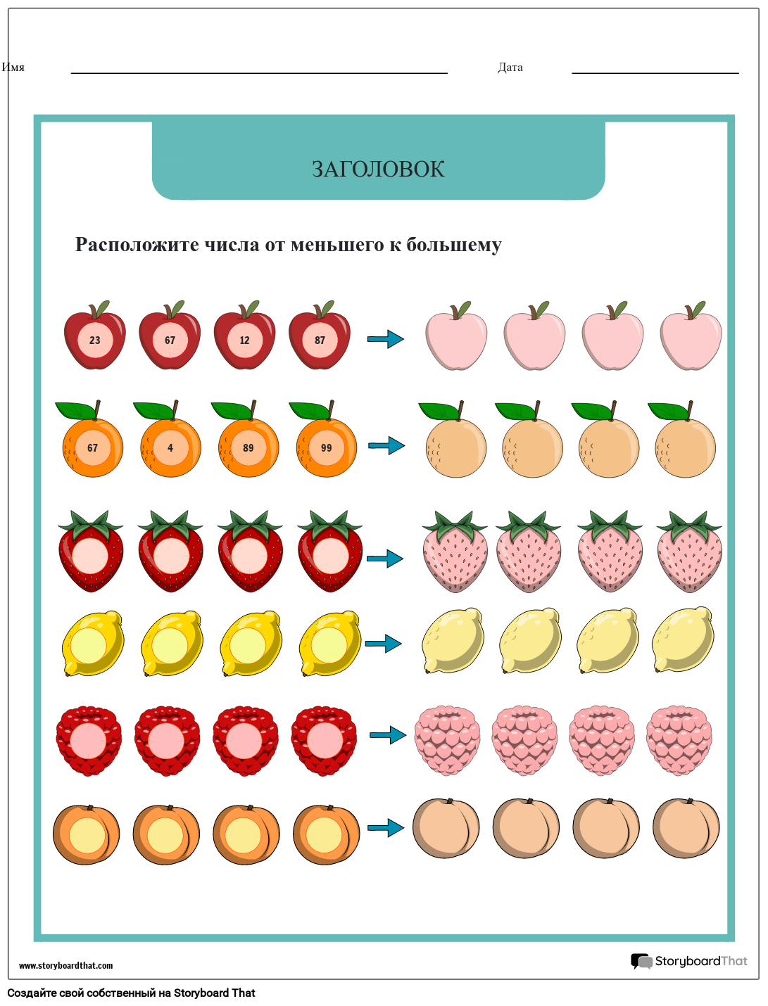 Таблица Номеров Заказа на Фруктовую Тематику Storyboard